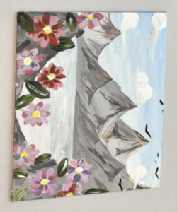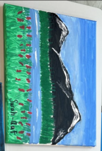 | Middle School 1st Prize | Sidra Awan | Very strong composition, demonstrating depth in their landscape, very good shading, color palette is striking, soft strokes , good detail |